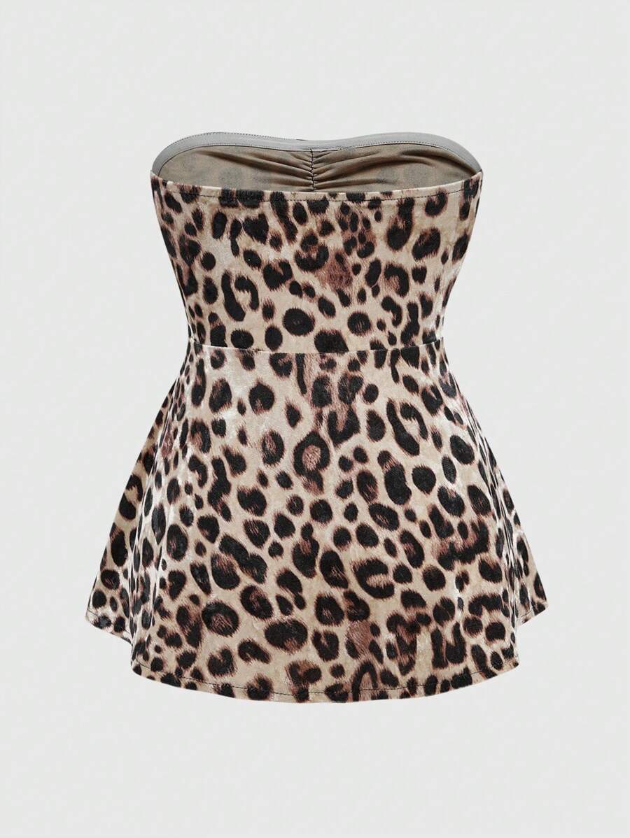 J-Fashion Plus Size Women's Y2K Leopard Print Midriff Baring Cropped Top For Summer