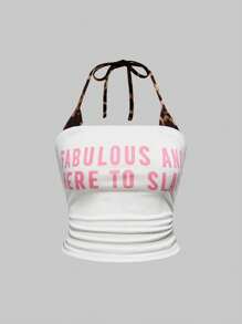J-Fashion Vintage American Chic Pink Slogan Leopard Print Splicing Cropped Camisole Top