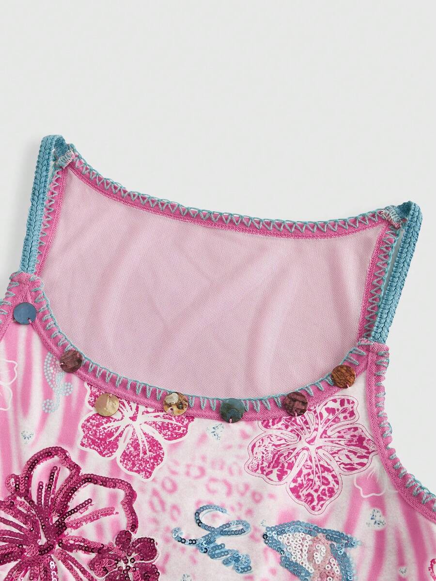 J-Fashion Vintage Hawaii Tropical Flower & Dolphin Embroidered, Leopard Print Beaded Women Halter Top