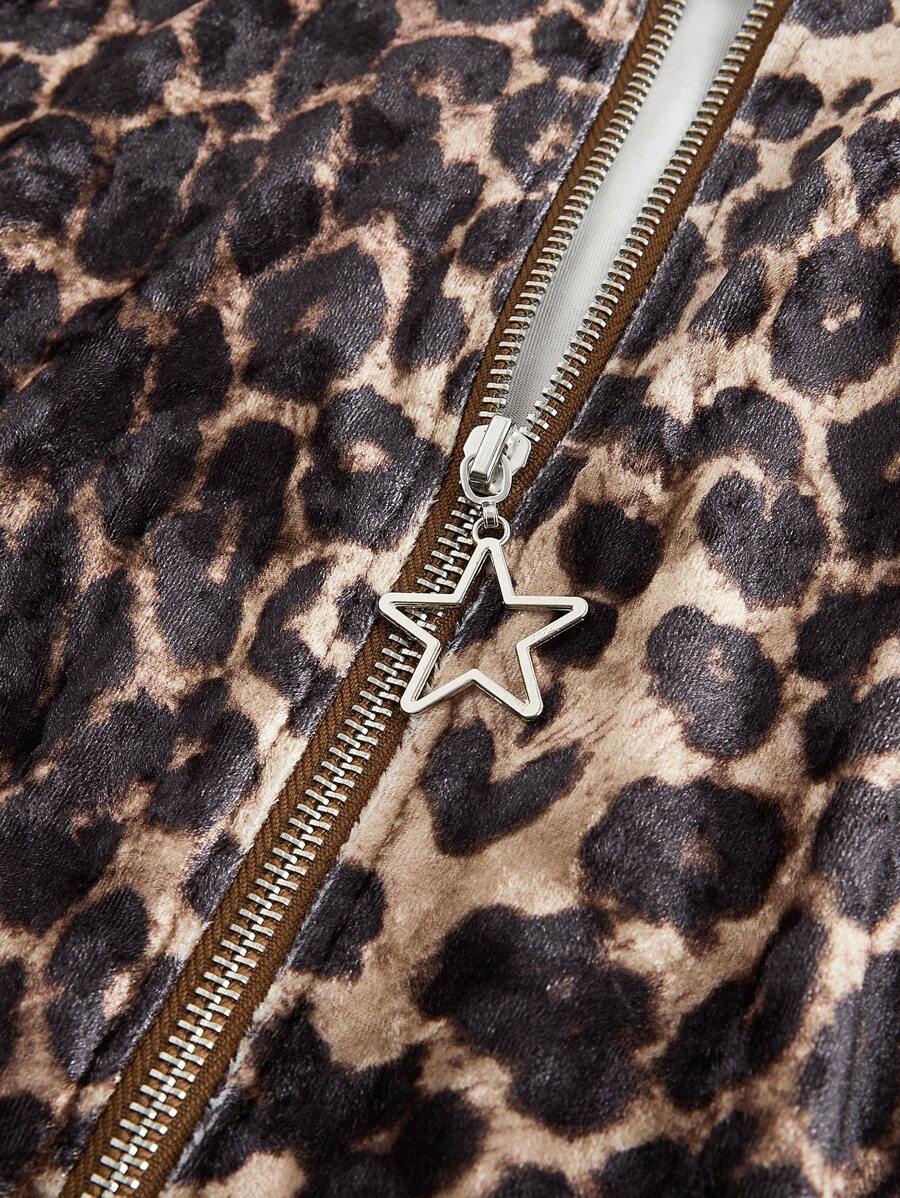 J-Fashion Vintage Rhinestone Embellished Velvet Leopard Print Hooded Sweatshirt Sweatshirt For Women,Long Sleeve Tops
