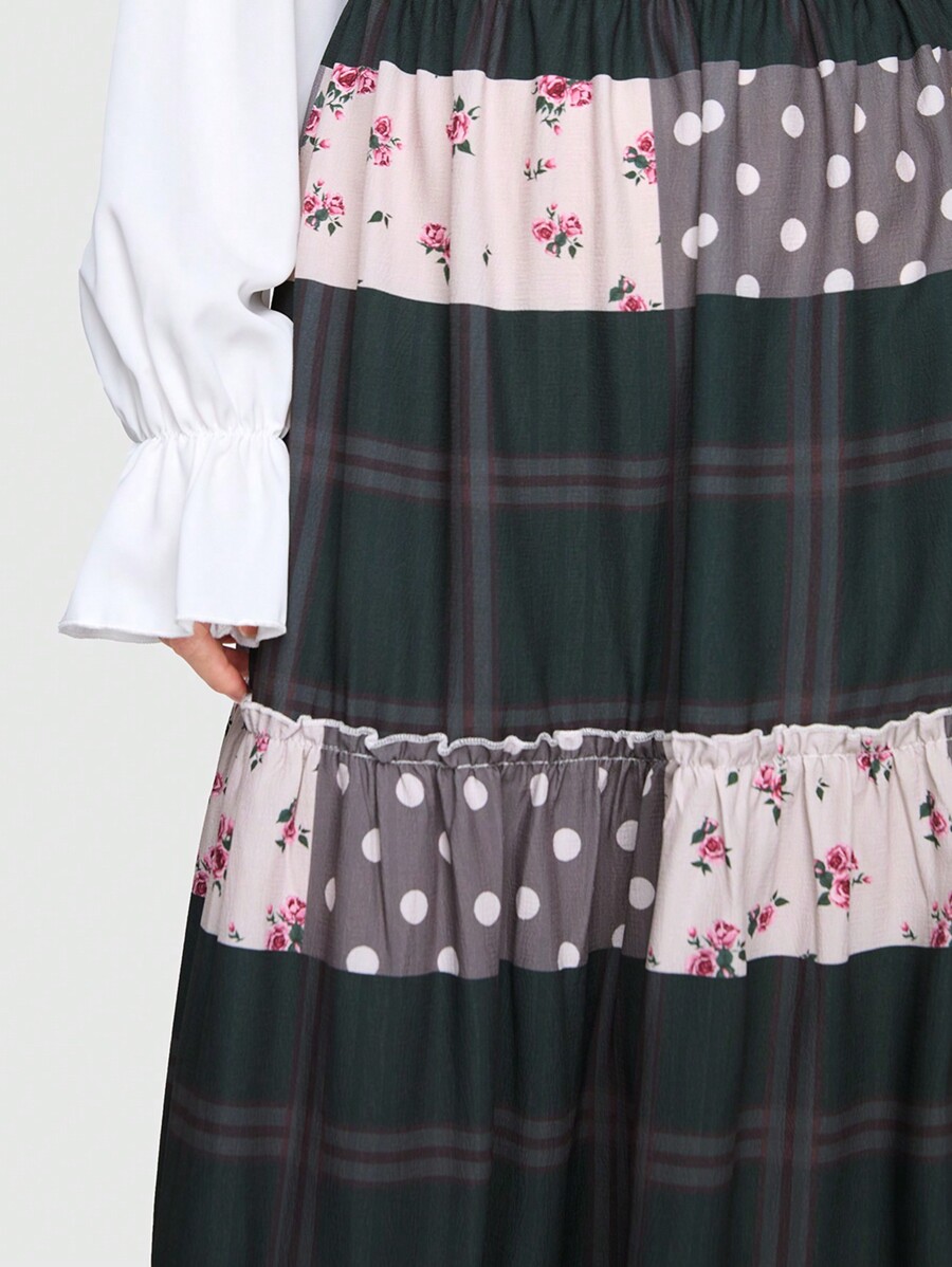 J-Fashion Women'S Elastic Waist Patchwork Pattern Skirt