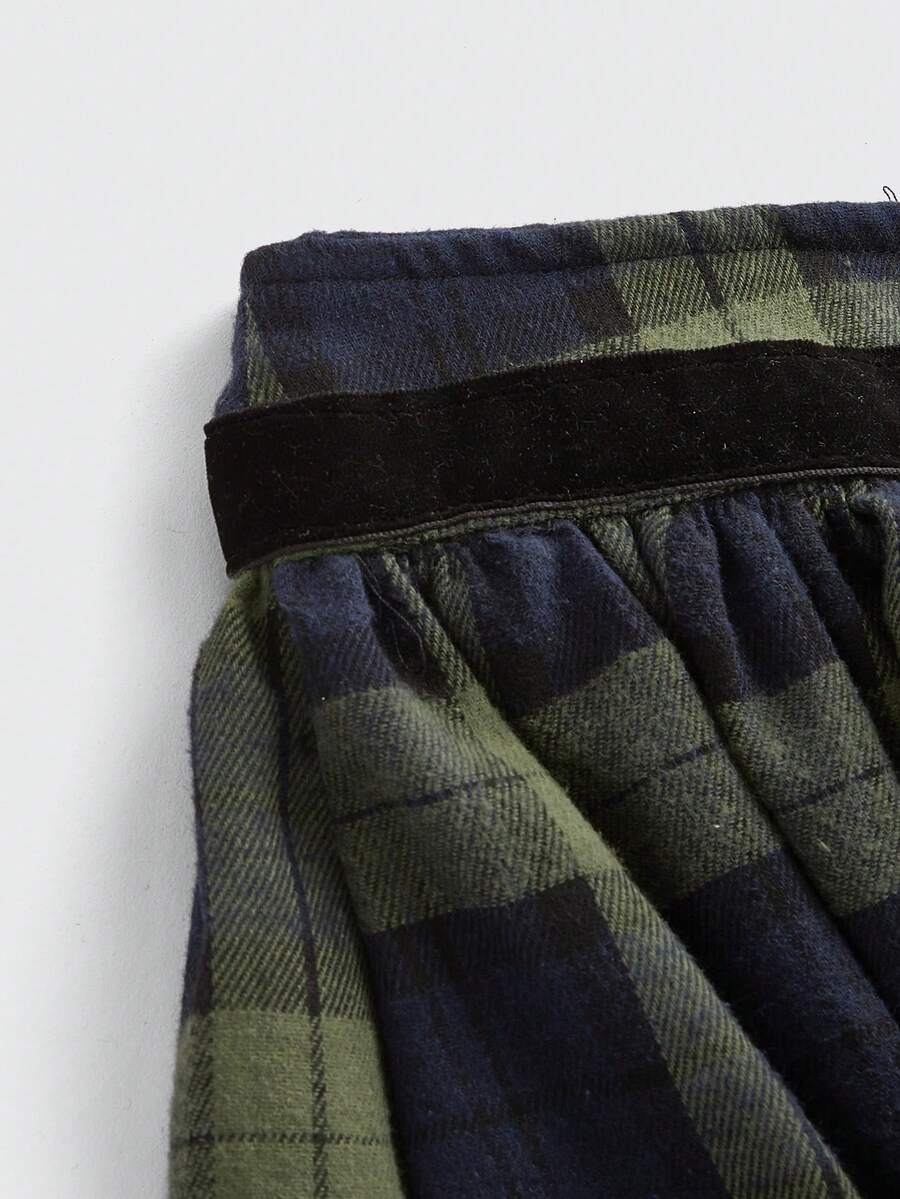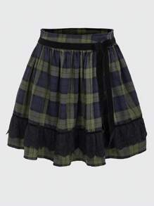 J-Fashion Women'S Embroidered Plaid Skirt With Ruffled Hem