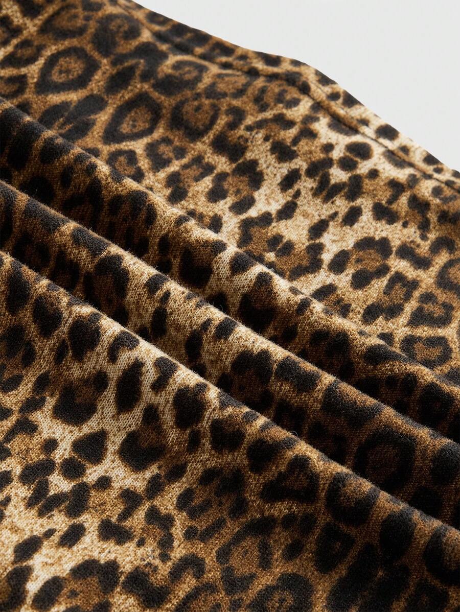 J-Fashion Women's Leopard Print Flare Sleeve Sweetheart Collar Casual T-Shirt