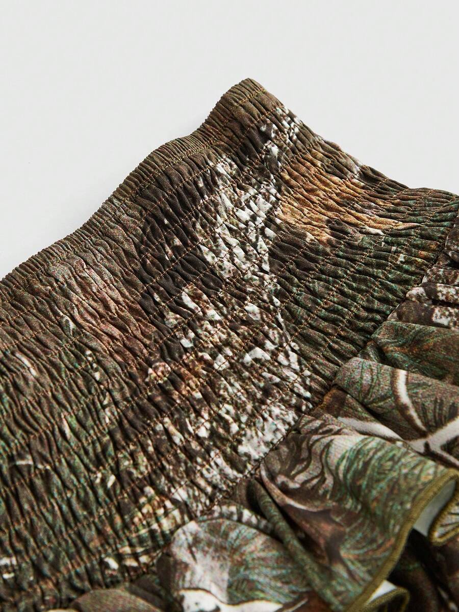 J-Fashion Women's Plant Print Ruffled Waist Layered Skirt
