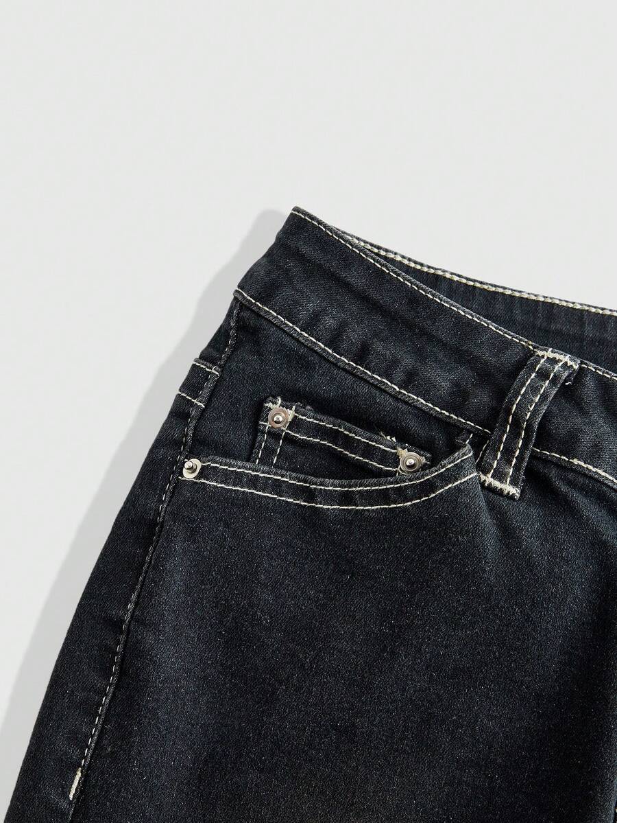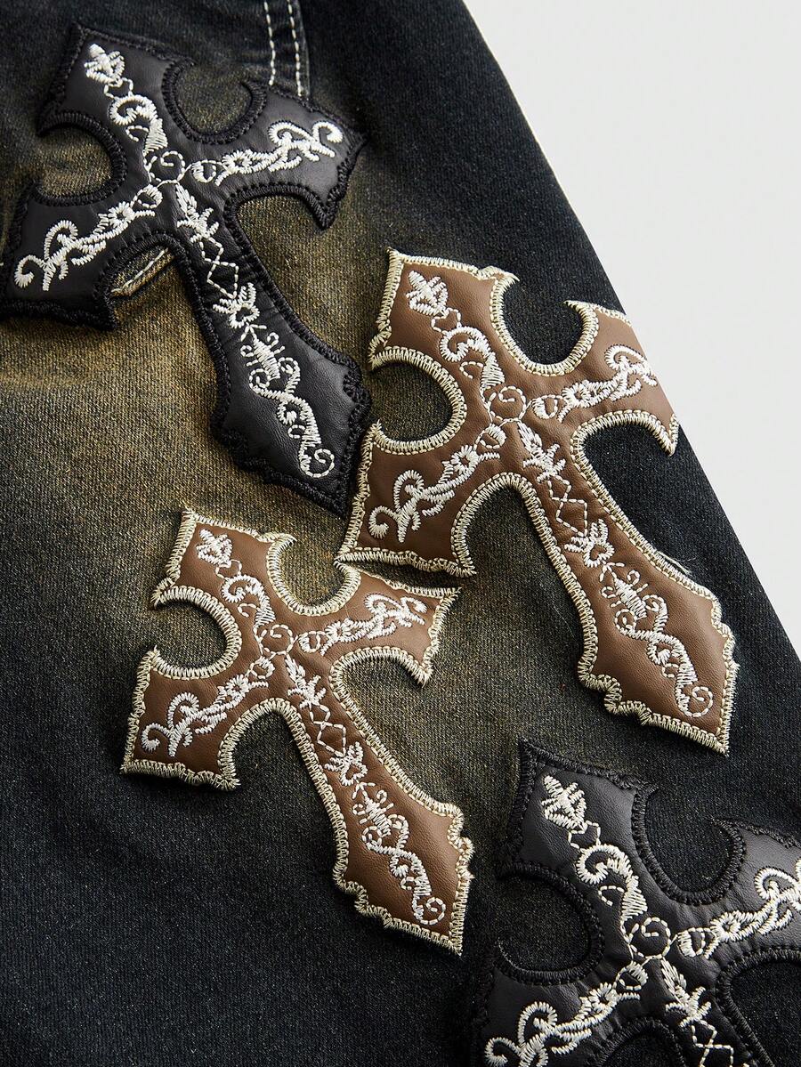 J-Fashion Women's Retro Cross & Letter Embroidered Super Low Waist Flared Leg Jeans