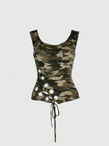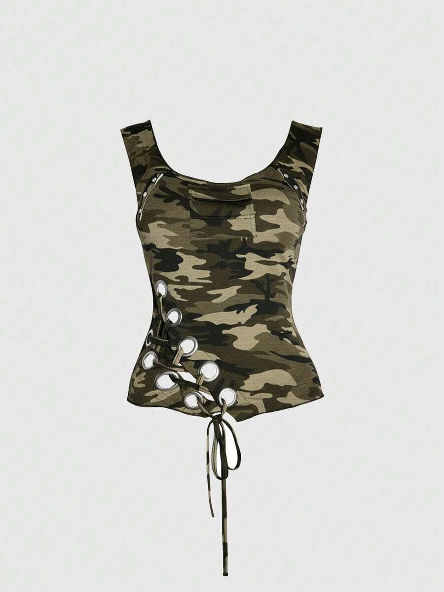 J-Fashion Y2K Babe Anime Eye Camouflage Print Tight Fit Women Kpop T-Shirt