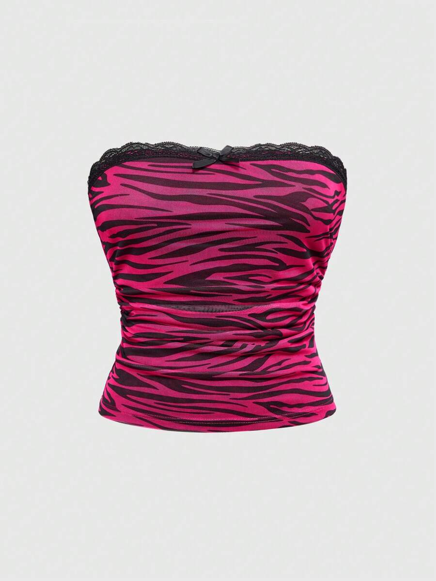 J-Fashion Y2K Baddie Pink Zebra Print Mesh Ruffle Shorts 2 Pieces Set For Women
