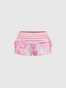 J-Fashion Y2K Beach Vacation Coconut Girl Print Low Waist Super Short Drawstring Pink Hibiscus & Leopard Print Shorts For Women