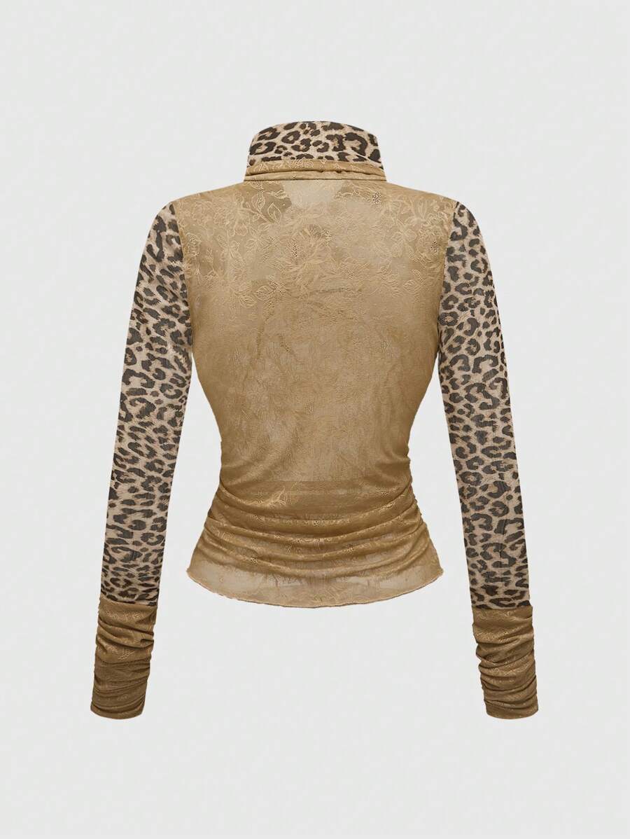 J-Fashion Y2K Gyaru Sexy Lace Leopard Print Sheer Spider Rhinestone Decor Tight Cropped Top For Women