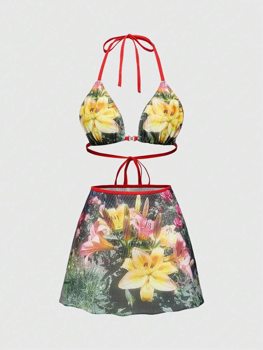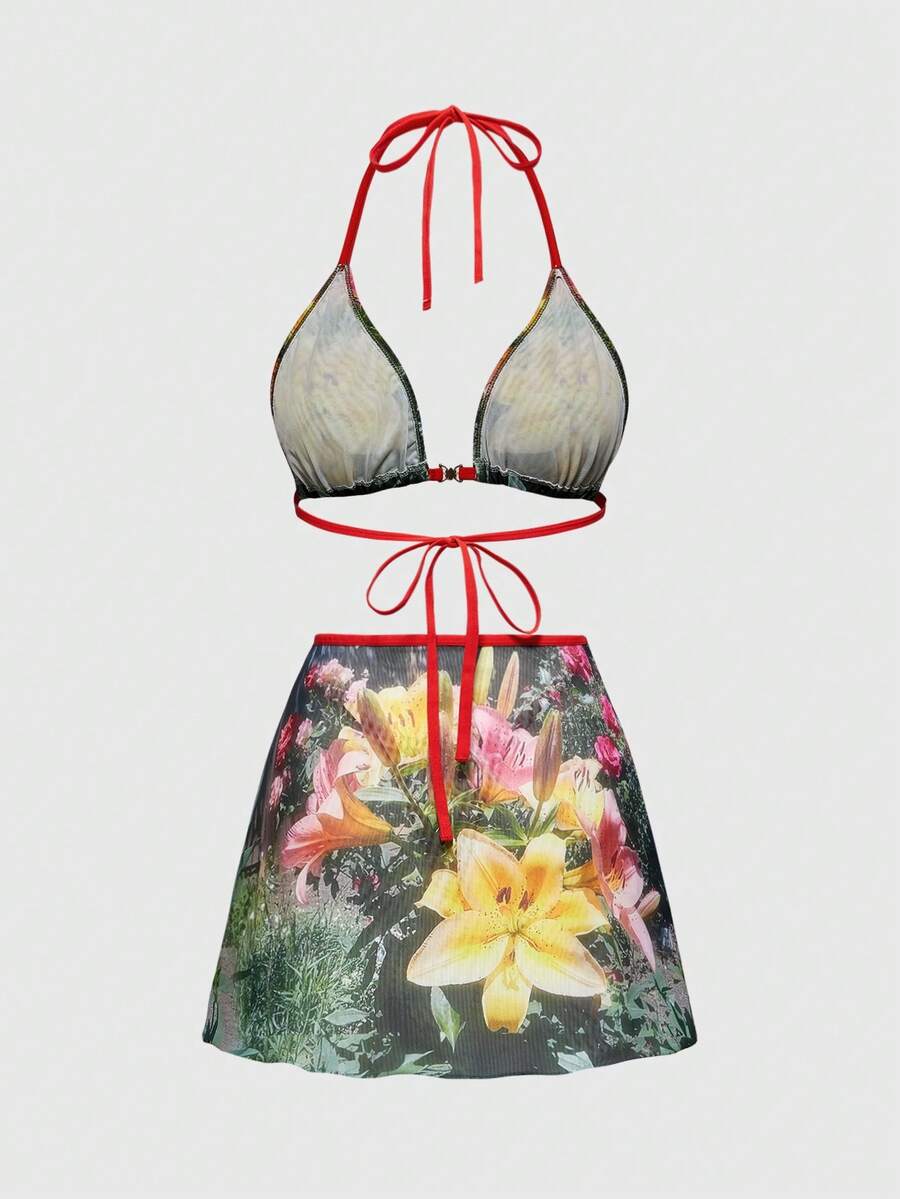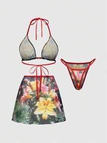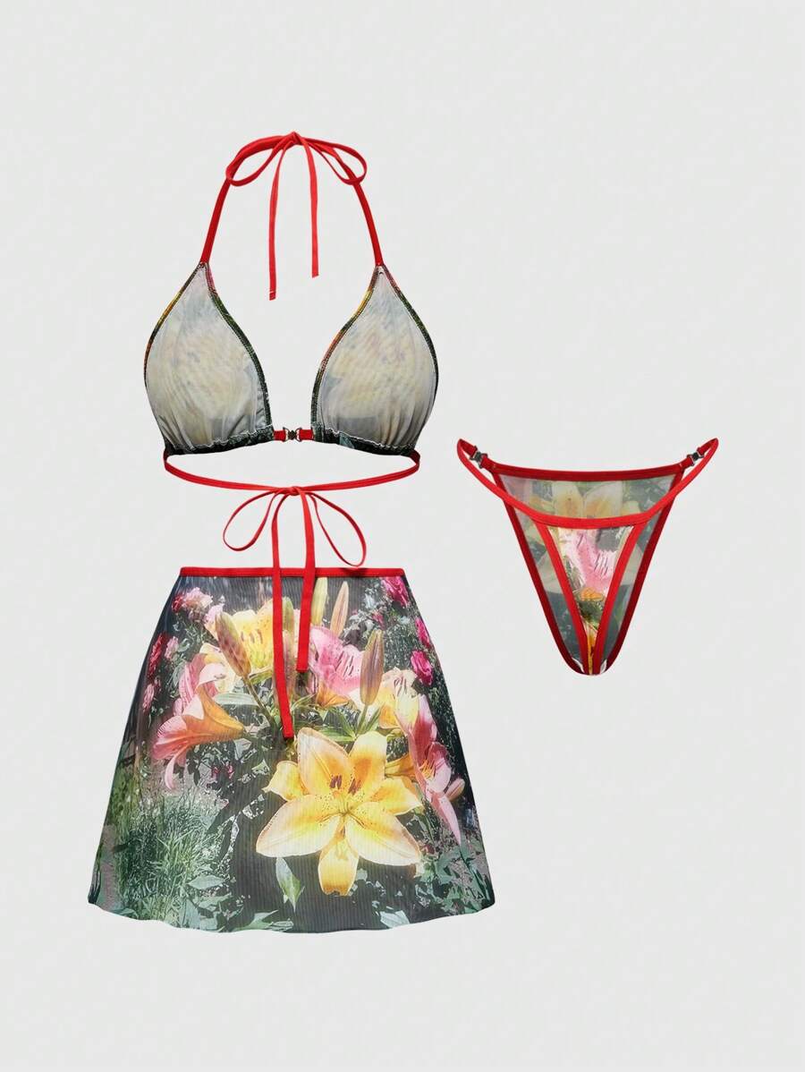 J-Fashion Y2K Lily Floral Print Sexy Lingerie Set