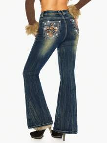 J-Fashion Y2K Low Waist Harajuku Style Crystal Heart Print Contrast Color Jeans For Women