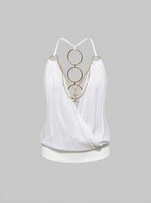 J-Fashion Y2K Retro Sexy Cross Chain Decor Criss-Cross Draped Neck Women's Tank Top