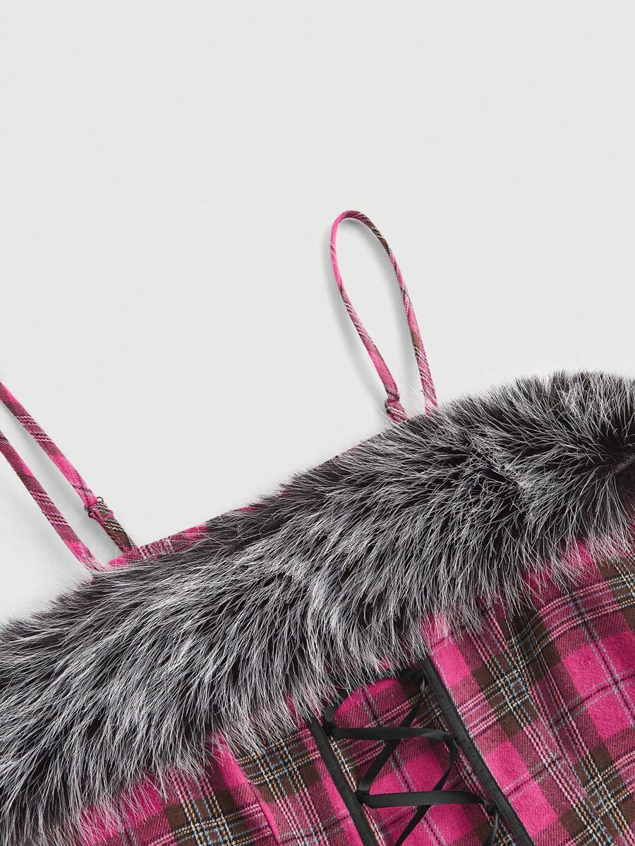 J-Fashion Y2K Shibuya Girl Oversized Bow & Lace Trim Plaid Cake Corset Dress For Women