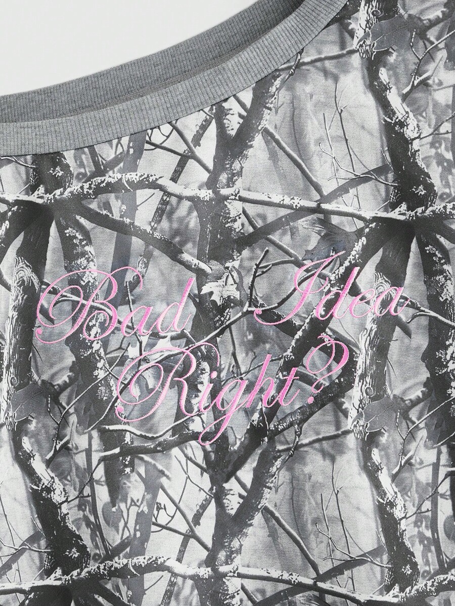 J-Fashion Y2K Style Camo Print Embroidered Bow Decor White Ribbon Women Hoodie