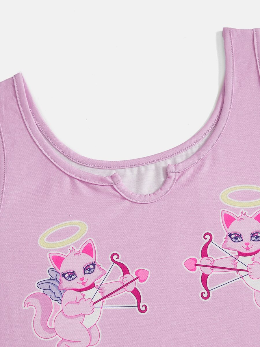 KLARYSSA Cartoon Graphic Lettuce Trim PJ Set
