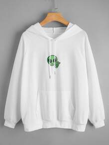 Kangaroo Pocket Alien Graphic Drawstring Hoodie