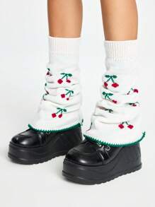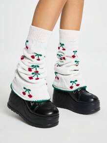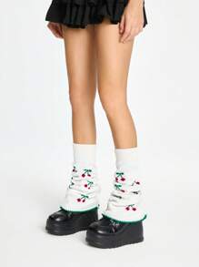 1 Pair Cute Kawaii Small Cherry Pattern White Bell Bottom Leg Warmers
