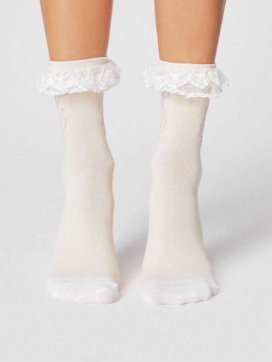 Kawaii 1 Pair Cute Pink Bow Detail Comfortable Mid-Calf Socks For Women
