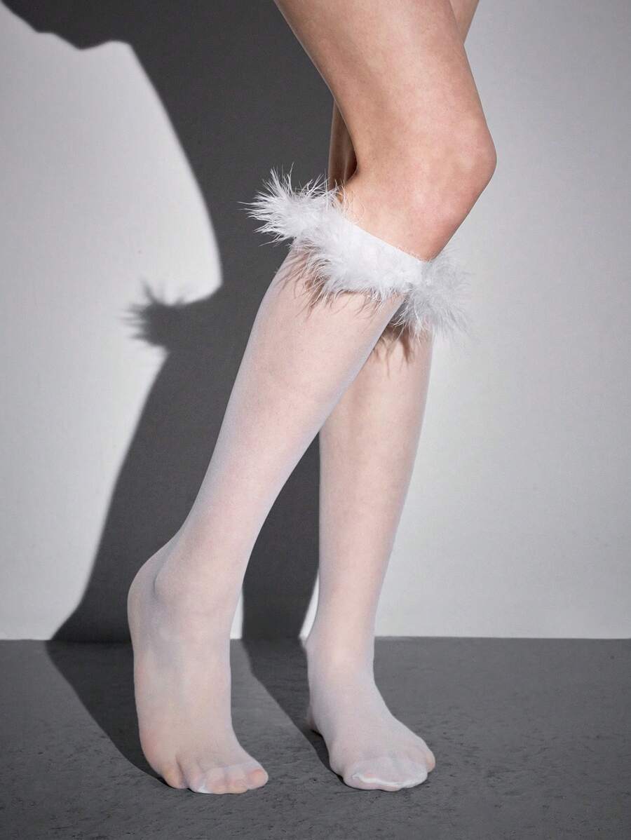 Kawaii 1 Pair Cute Solid Color Faux Feather Leg Warmers, Versatile School Girl Style Socks For Women