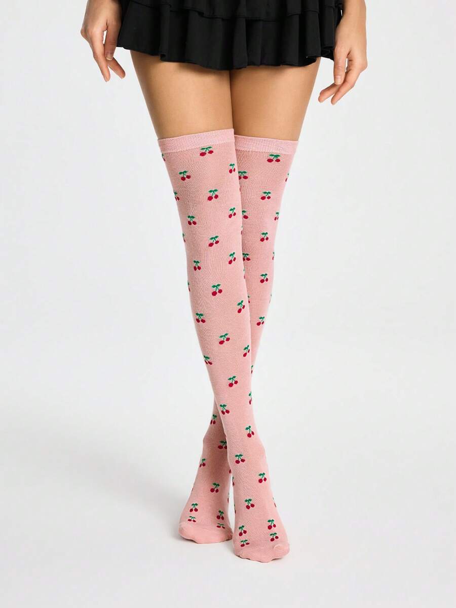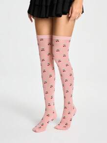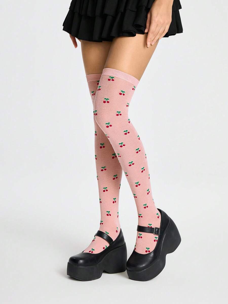 Kawaii 1 Pair Dark Punk Cute Cherry Pink Thigh-High Socks