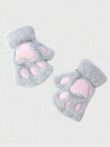 Kawaii 1 Pair Plush Cat Paw Fingerless Gloves, Suitable For Daily Wear