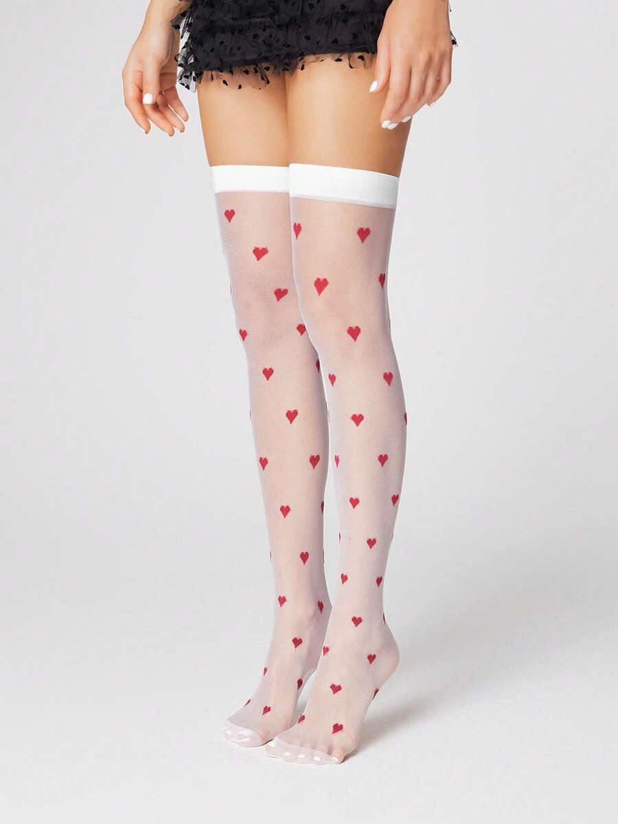 Kawaii 1 Pair Women Red Heart Pattern Thigh High Socks, Suitable For All Seasons