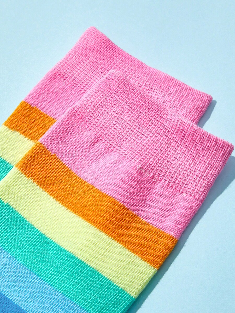 Kawaii 1pair Women Rainbow Striped Pattern Over The Knee Socks