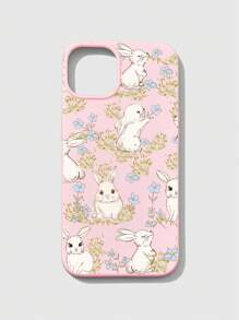 Kawaii 1pc Cute Floral Bow Bunny Pattern Pink Phone Case, Compatible With IPhone 11 12 13 14 15 Pro Max