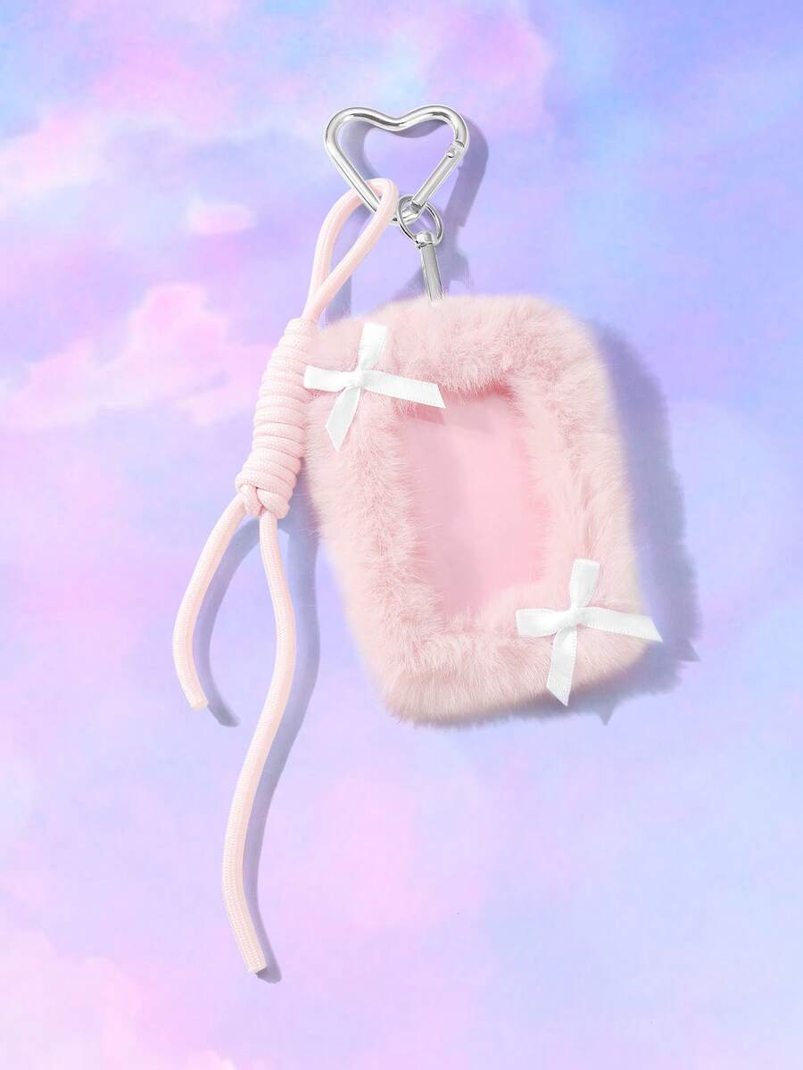 Kawaii 1pc Cute & Minimalist Plush Bow Lanyard Card Holder, Versatile Accessory For Office Workers, Students, Ideal Gift For Special Occasions