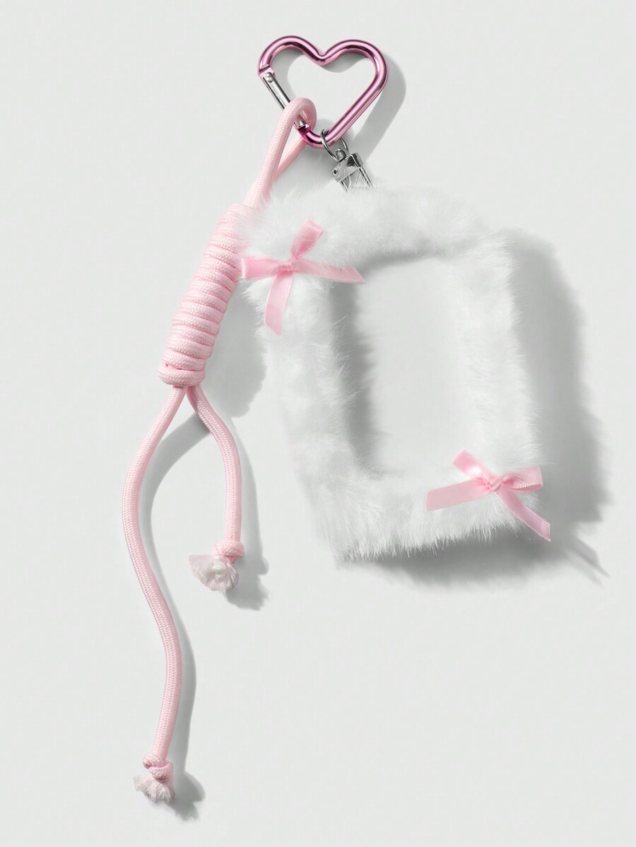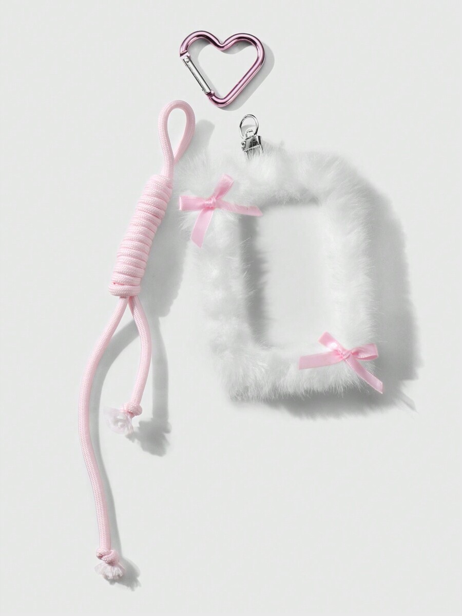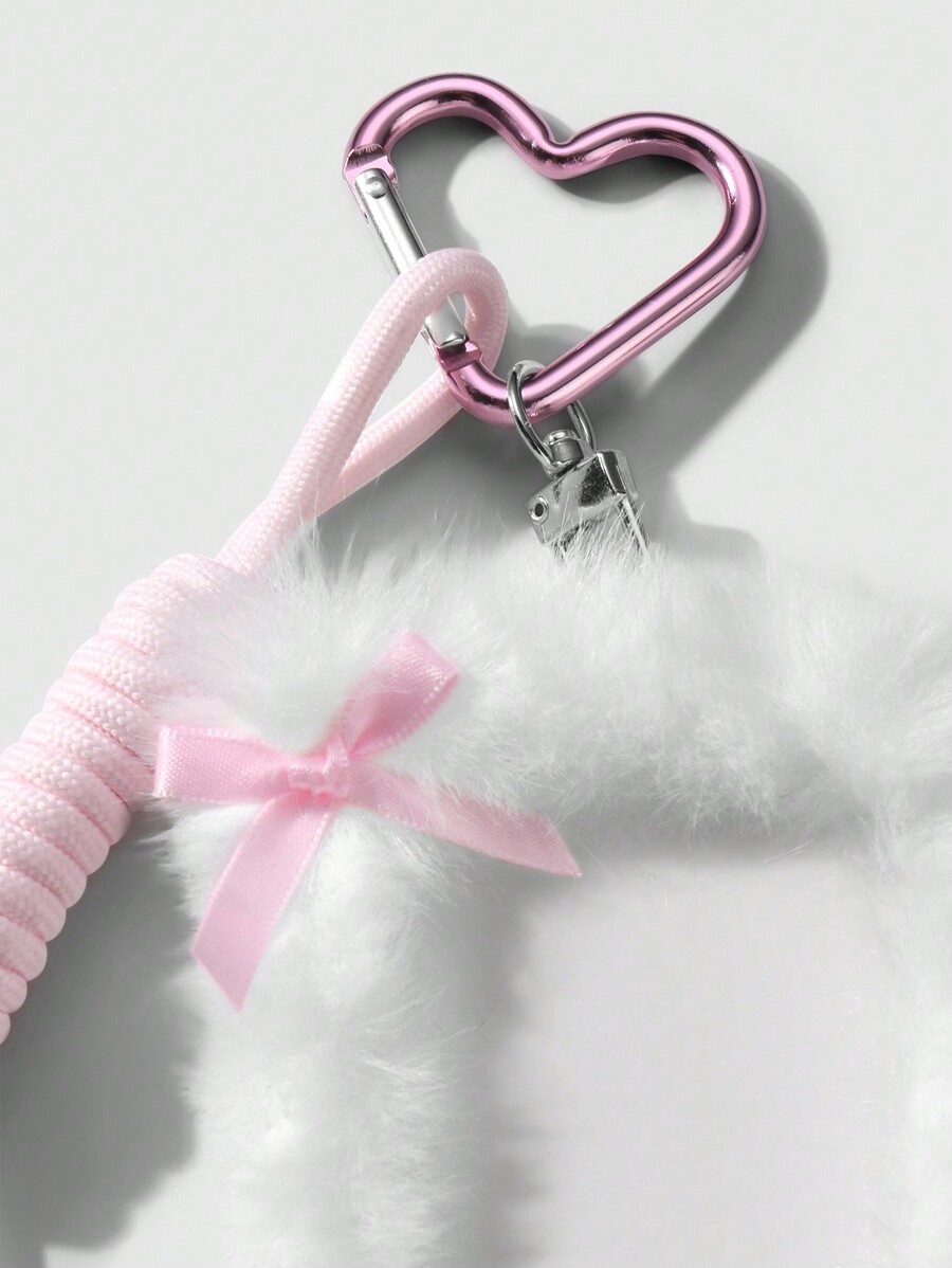 Kawaii 1pc Cute & Minimalistic White Plush Fabric Strap With Pink Ribbon Bow Adjustable Lanyard, Suitable For ID Card, Keys, Bag Decoration, Gift For Office Workers, Students, Daily Use