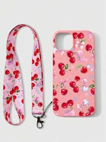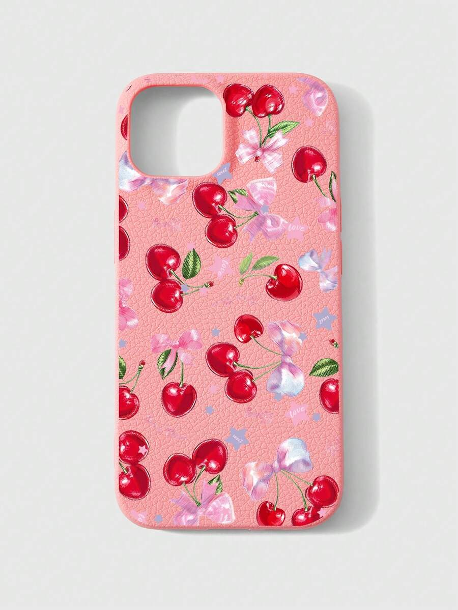 Kawaii 1pc Cute Pink Bow Cherry Print Phone Case Compatible With IPhone