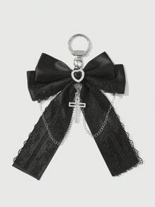 Kawaii 1pc Cute Pink Gothic Cross Bow Pearl Keychain Bag Charm