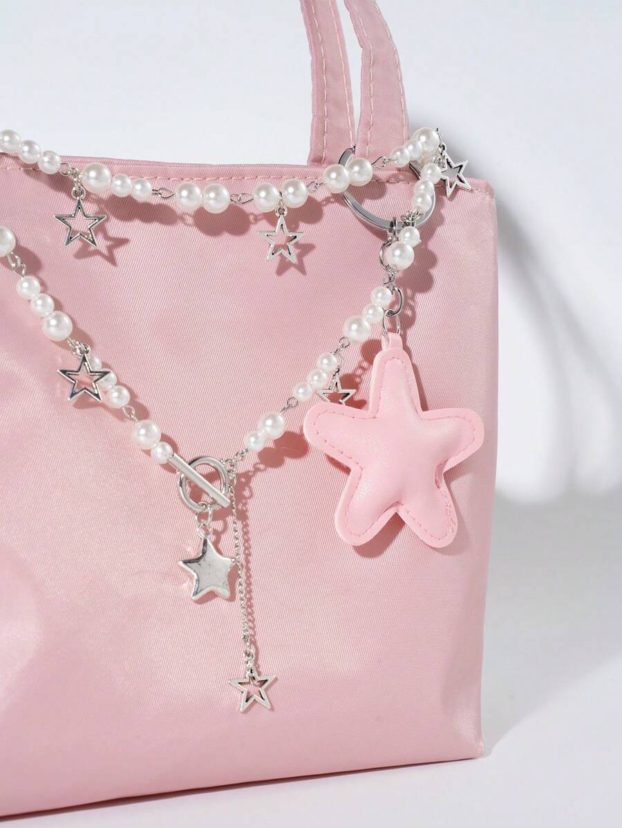 Kawaii 1pc Cute Pink Star & Faux Pearl Decor Lady's Handbag, Suitable For Spring Outing And Dating