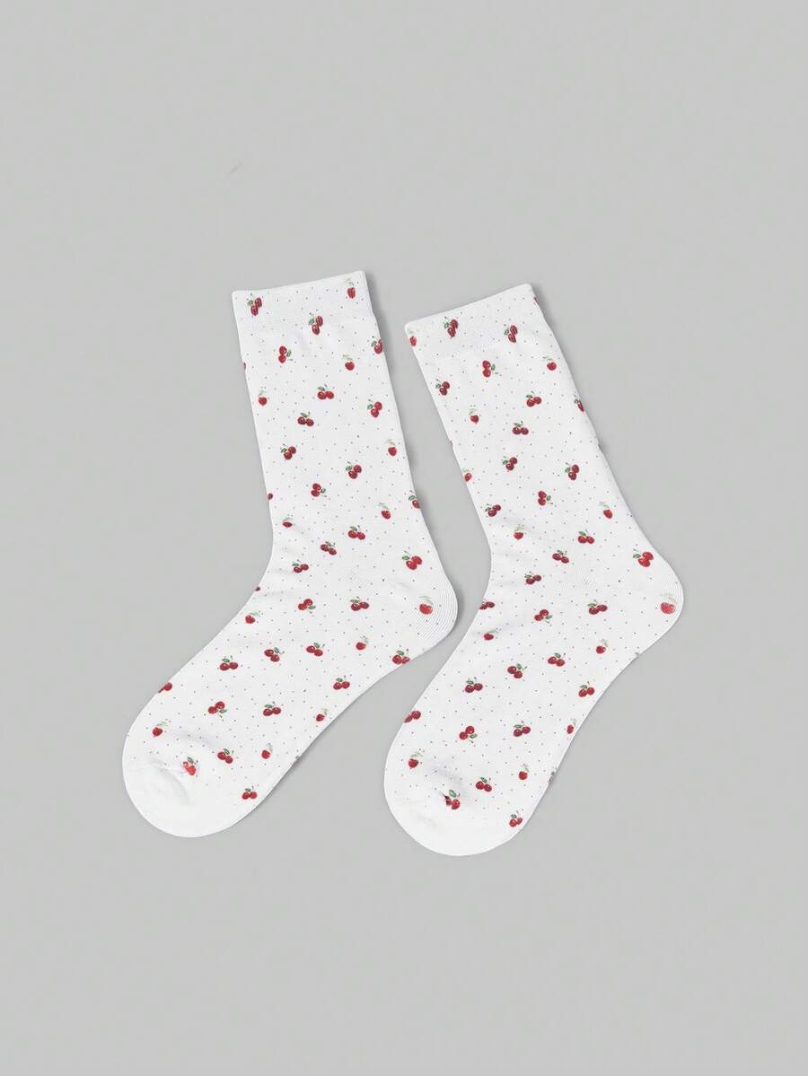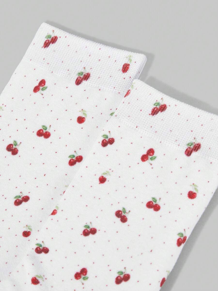 Kawaii 1pc Cute Red Polka Dot Cherry Women's Mid-Calf Socks #1515266