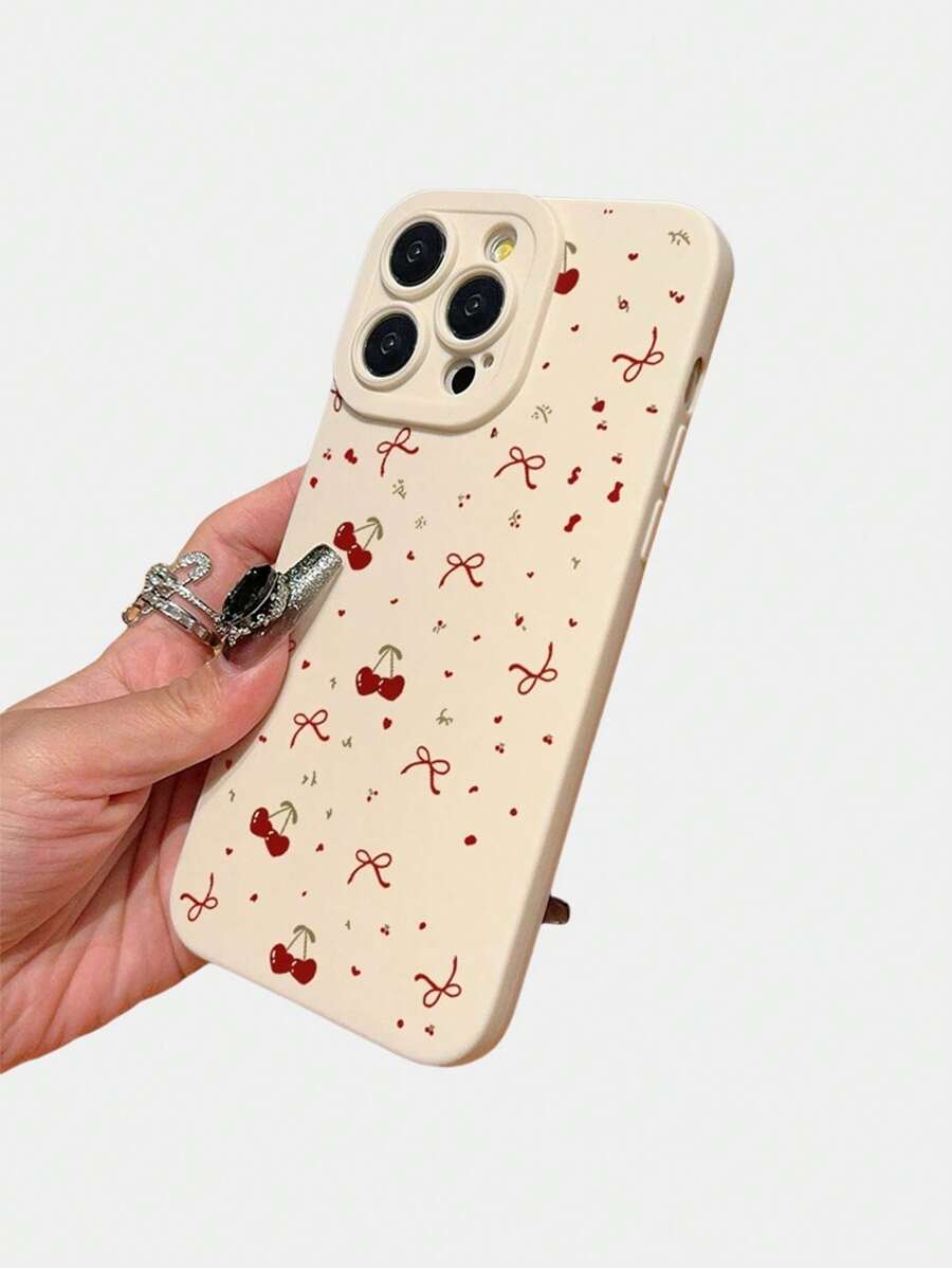 Kawaii 1pc Cute Sweet Cherry Butterfly Painting Phone Case For IPhone11 14promax 15promax Series Phone Protective Cover