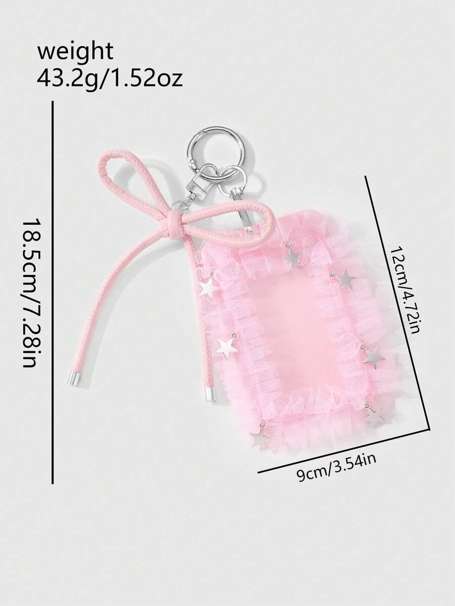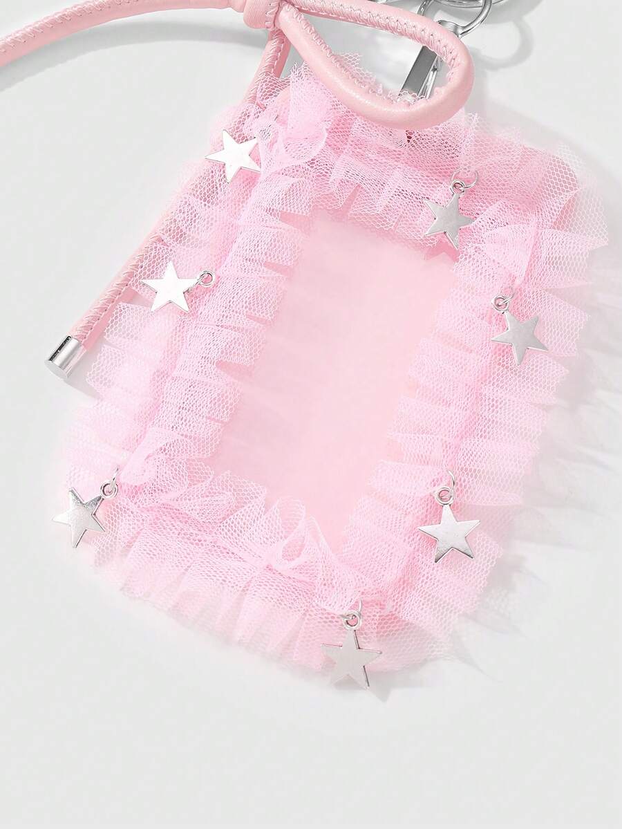 Kawaii 1pc Elegant And Exquisite INS Style Silver Star & Pink Leather Bow Card Holder With Lanyard, Suitable For Office Worker, Student, Women, As Daily Wear Or Gift For Holidays