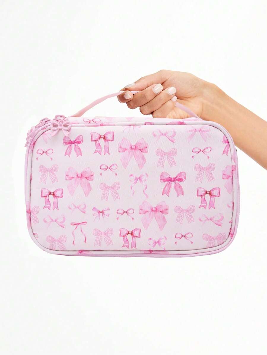 Kawaii 1pc Fashion Bow Decor Versatile Large Capacity Portable Cosmetic Bag