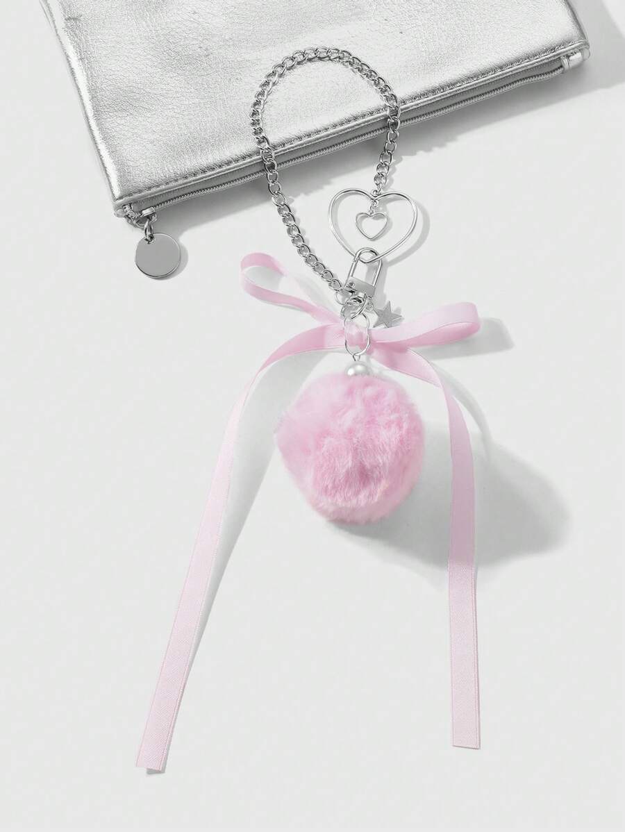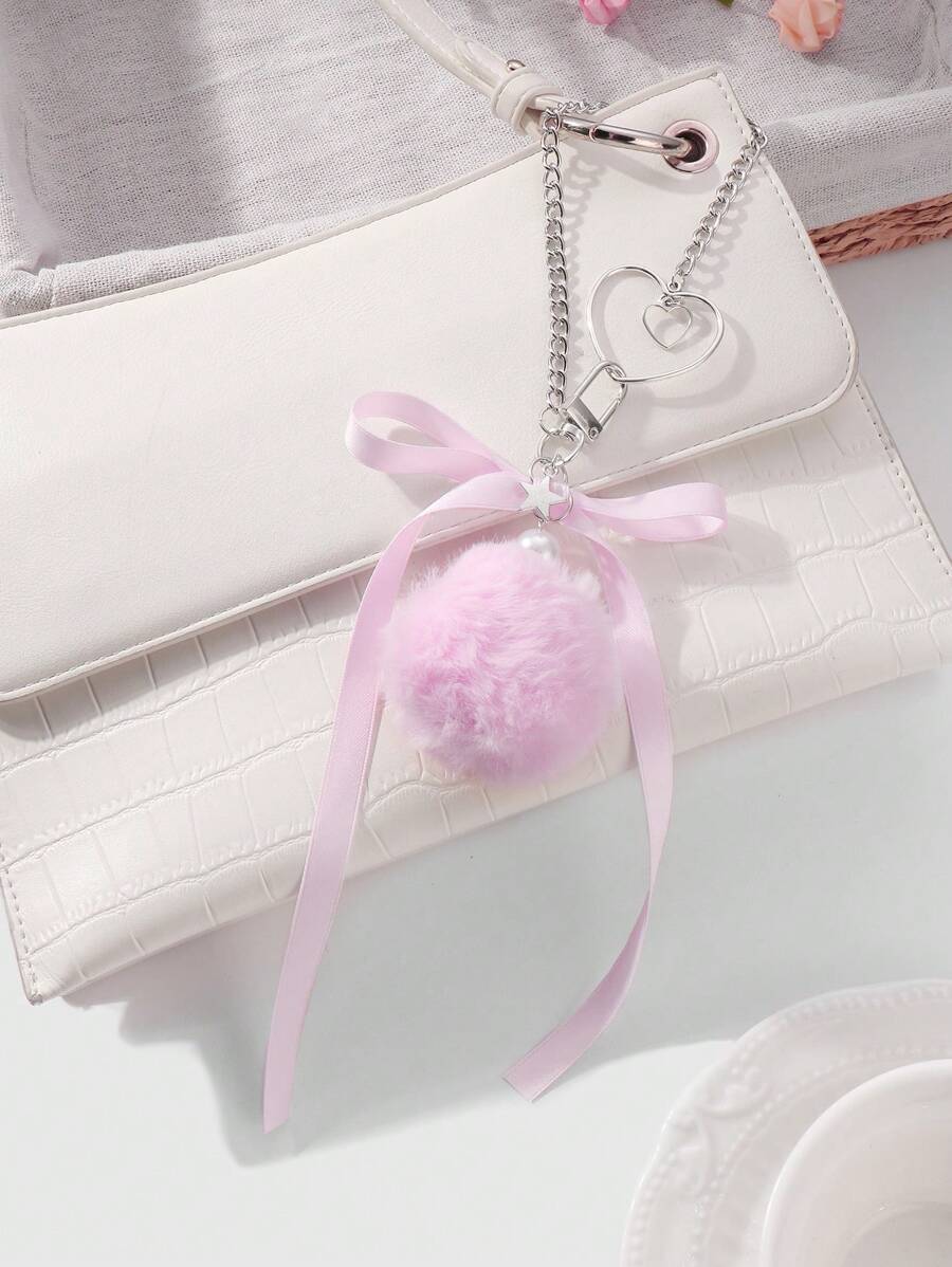 Kawaii 1pc Fashion Elegant Hollow Heart, Star, Faux Pearl Chain, Pink Fur Ball, Bowknot Pendant Keychain, Ideal For Women/Girls Everyday Accessory, Holiday Gift