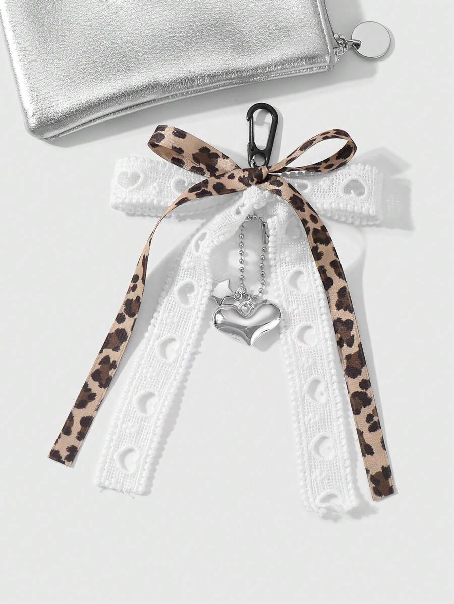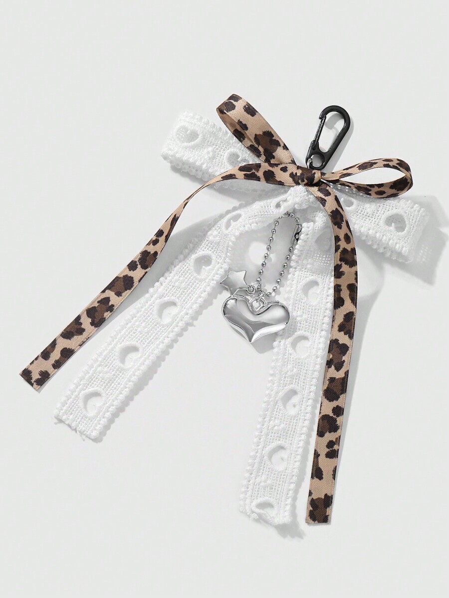 Kawaii 1pc Fashionable Minimalist Delicate High-Quality Brown Leopard White Hollow Heart Bowknot Detachable Pearl Chain CCB Star Heart Pendant Keychain, Suitable For Women, Daily Wear, Holiday Gift