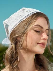 Kawaii 1pc Floral Lace Thin Triangular Scarf, Sweet Cute Style Hollow Out Head Wrap Hair Band