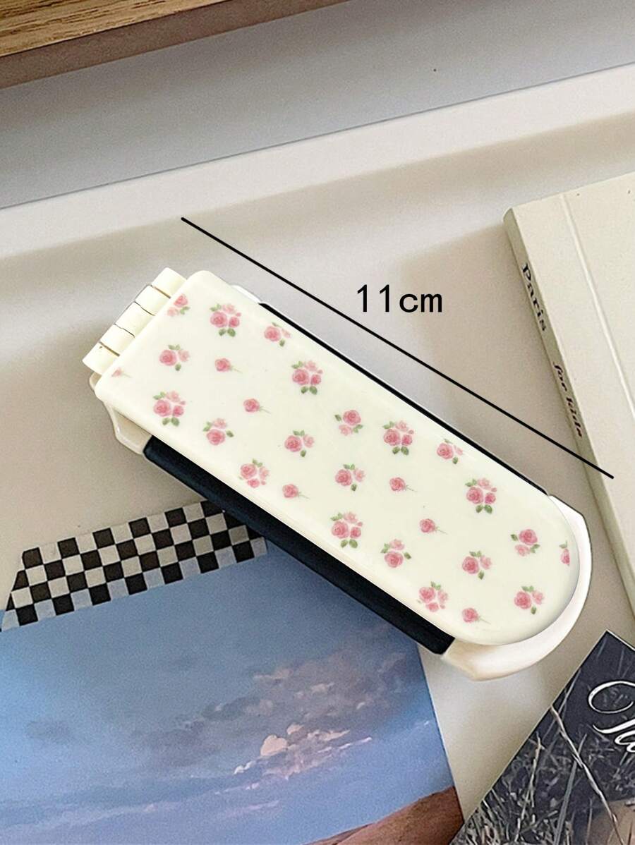 Kawaii 1pc Flower Print "Back To School" Folding Comb With Air Cushion And Mirror, Hair Brush