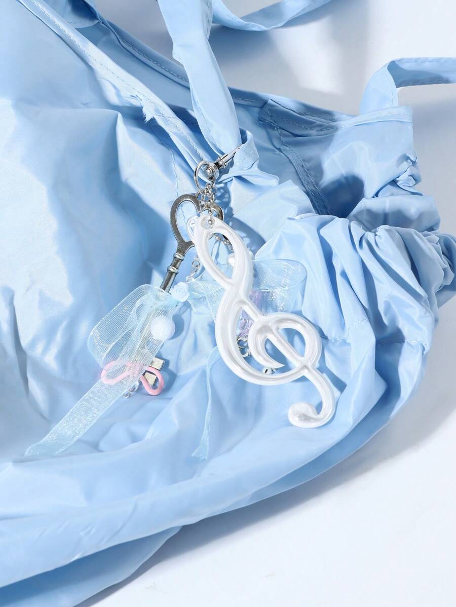 Kawaii 1pc Fresh Blue Foldable Tote Bag, Large Capacity Shoulder Shopping Bag For Women