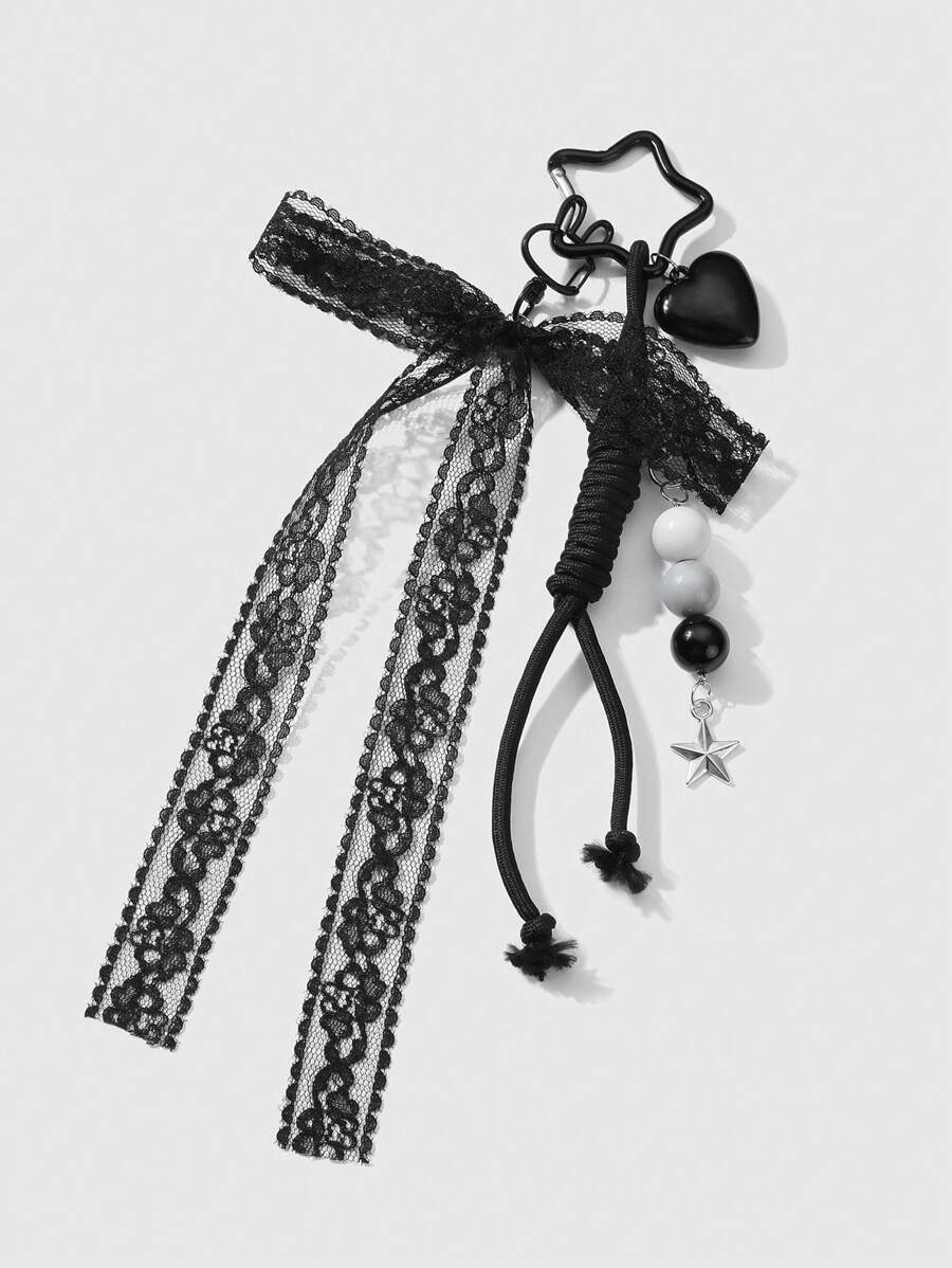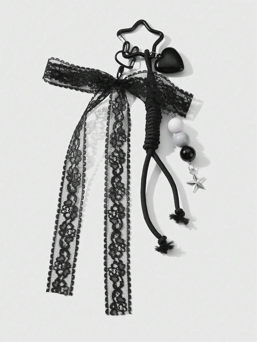 Kawaii 1pc Gothic Style Acrylic Heart, Star Shaped Pendant On Adjustable Cord, Goth Lace Bow Decor Keychain, Suitable For Women, Girls Daily Wear, Holiday Gift