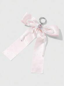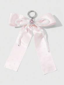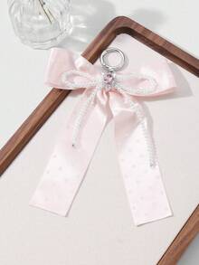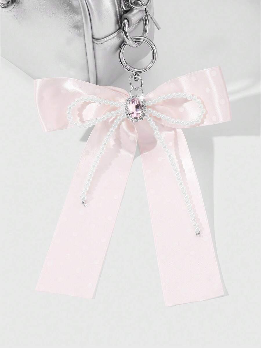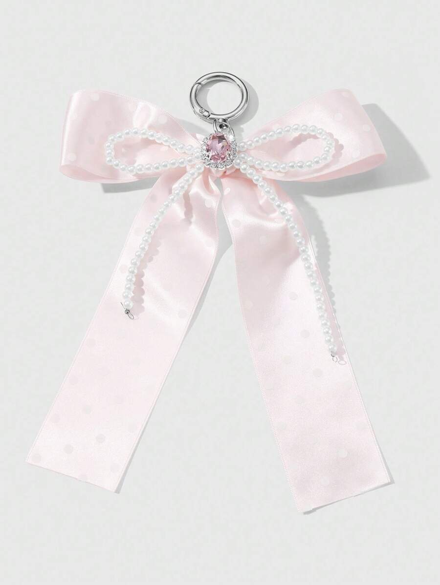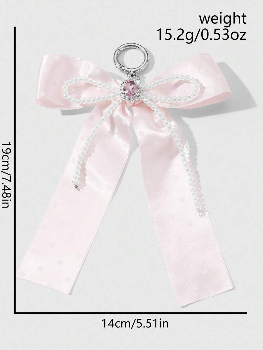 Kawaii 1pc Handmade Delicate Cute Girl Simple High Quality High-End White Faux Pearl Crystal Pink Polka Dot Ribbon Bow Keychain Bag Pendant, Suitable For Women Girls Daily Wear, Festival Gift