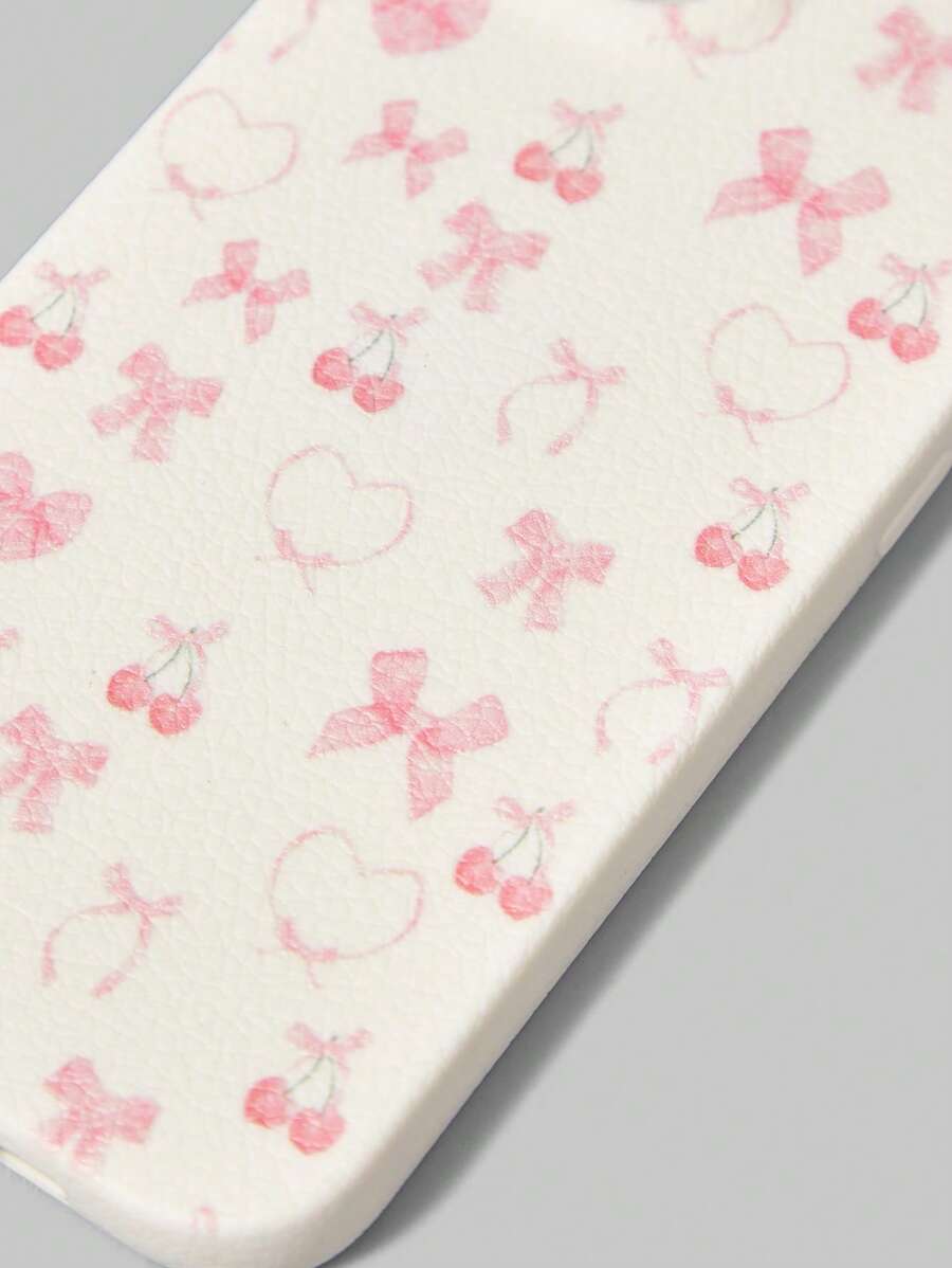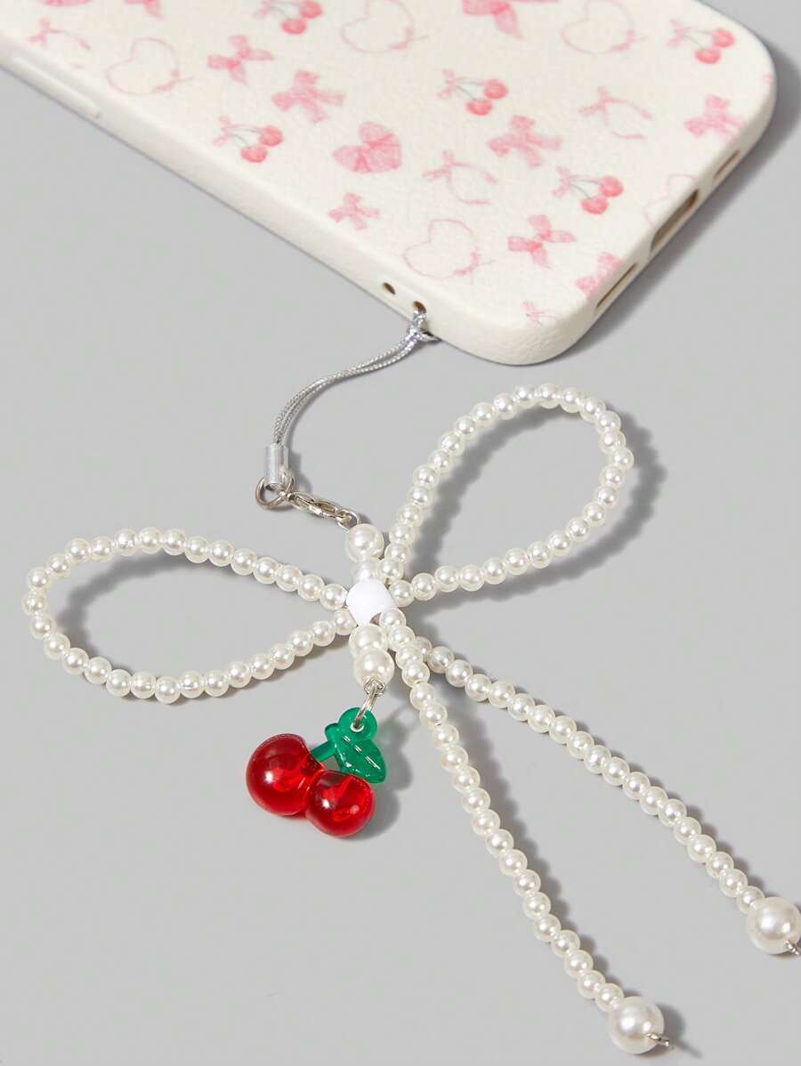 Kawaii 1pc Ins Style Pink Heart Bow Cherry Pattern DIY Phone Lanyard Case, Compatible With IPhone 13, 14, 15, 16, 16 Pro, 16 Plus, 16 Pro Max