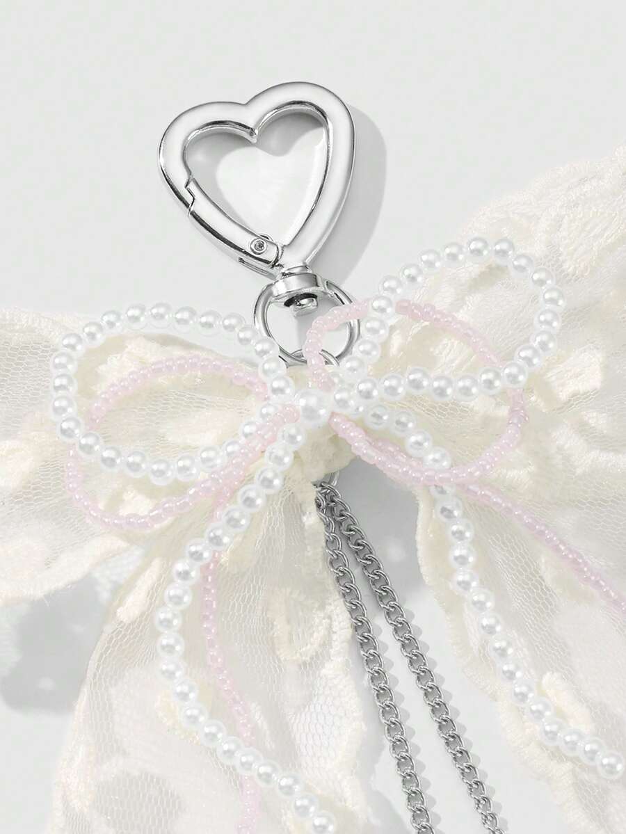 Kawaii 1pc Korean Minimalist Elegant Versatile Luxury Handmade Beaded White Faux Pearl, Faux Crystal, Mesh Bow, Chain, Heart, Star DIY Keychain Bag Charm Accessory, Suitable For Women, Ladies Daily Wear, Holiday Gift