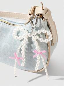 Kawaii 1pc Korean Simple Sweet And Cool Faux Pearl Pendant Keychain With 2 Pink Ribbon Bows, For Bag And Key Decoration Valentines