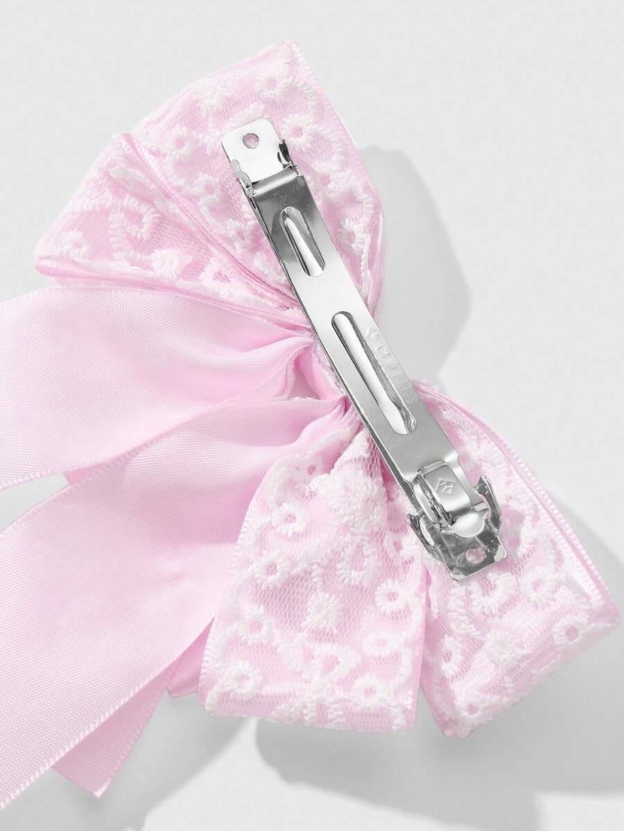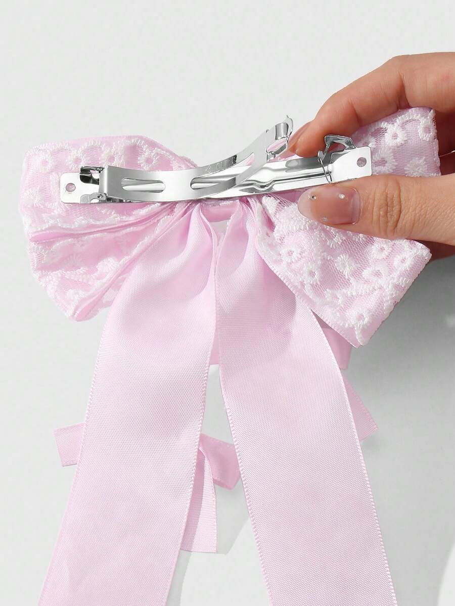 Kawaii 1pc Korean Style Cute Delicate Minimalist High Aesthetic Light Pink Ribbon Lace Embroidery Bow DIY Hair Clip, Spring Clamp Ponytail Clip, Suitable For Women And Girls Daily Wear, Holiday Gift
