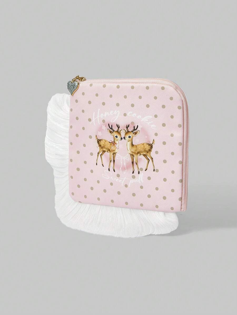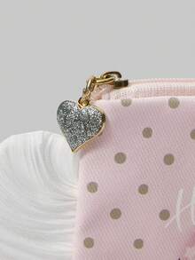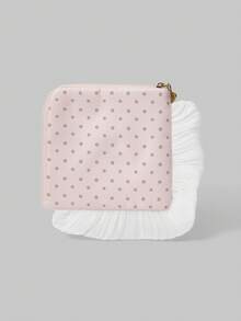 Kawaii 1pc Large Capacity Portable Makeup Bag With Fashionable All-Over Cherry Pattern And Square Lace Trim, 15x15cm