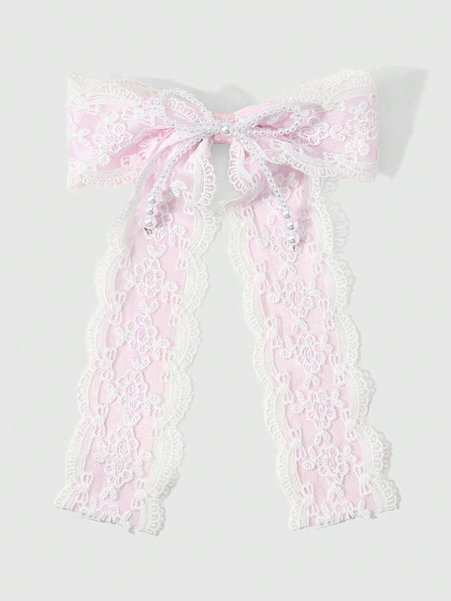 Kawaii 1pc Minimalist Elegant Champagne Shiny Mesh Ribbon Faux Pearl Bow DIY Hair Clip, Suitable For Women & Girls Daily Wear, Holiday Gift